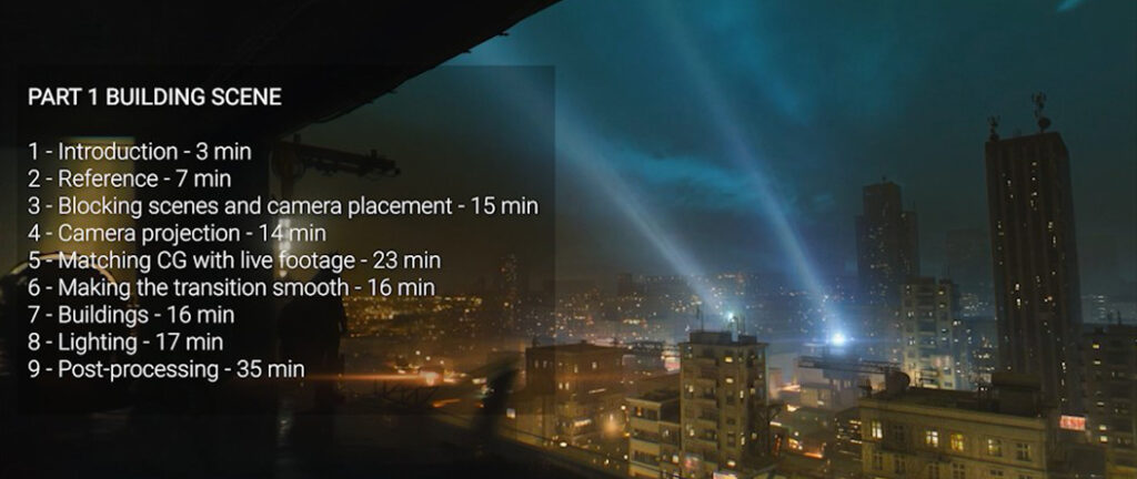 In this part of the tutorial, we create a Batman animation inspired by the vibe from the movie The Batman (2022) by taking a small part from the movie to have the best possible reference for lighting and color-grading, and we built the entire scene around that, about 90% of the scene will be CGI at the end.